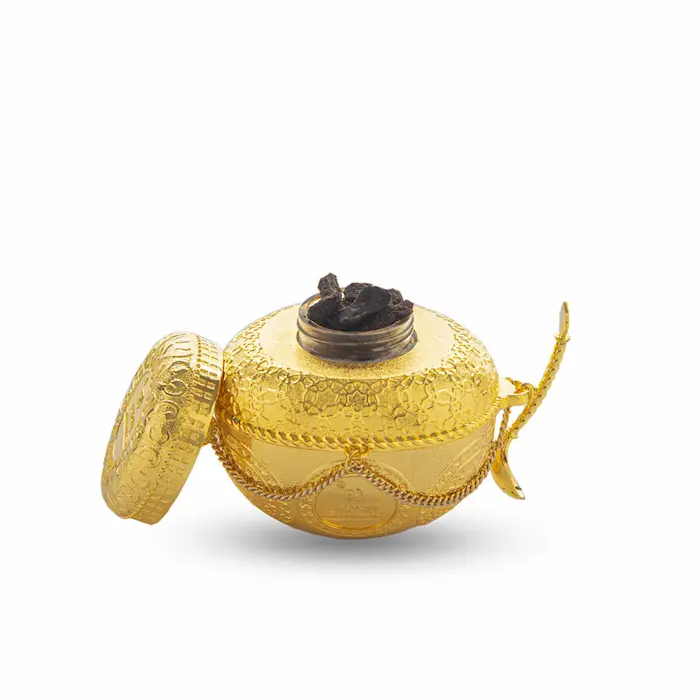 القوام: كسرات عود طبيعية مشبعة بالزيوت العطرية، تُستخدم بسهولة على الفحم أو في المبخرة الكهربائية، وتتميز باحتراق هادئ دون أن تترك رائحة حرق مزعجة.