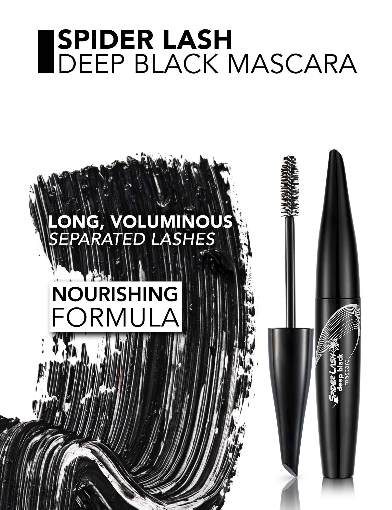 تنساب التركيبة الكريمية ذات اللون الأسود العميق للغاية من ماسكارا Spider Lash Deep Black بسهولة وتلتصق بالرموش لتجعلها تبدو أكثر كثافة وحجمًا بشكل ملحوظ.