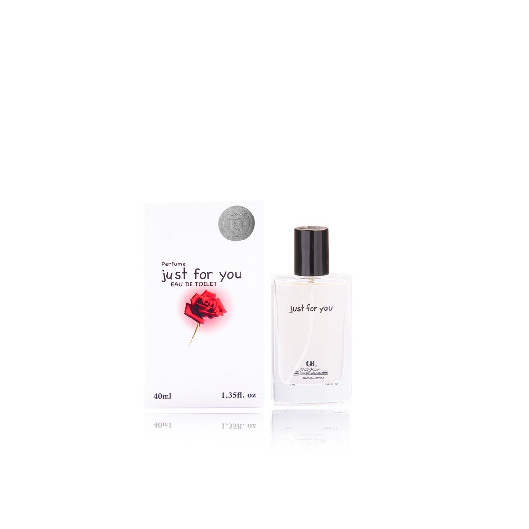التصميم: زجاجة أنيقة تحمل اسم “Just For You” ، مع شعار G1 Collection.