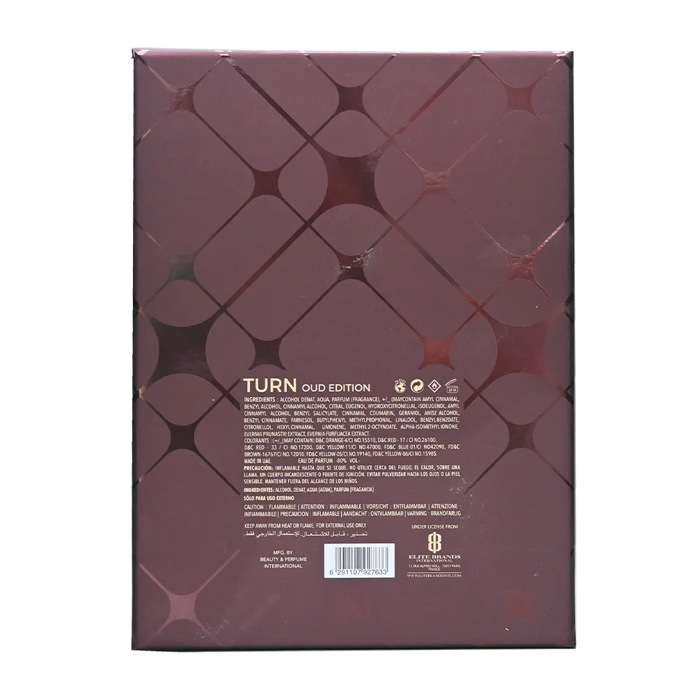 يُعد TURN Pour Homme الخيار المثالي للرجل العصري، الذي يُقدّر الفخامة ويبحث عن تميز دائم. مع زجاجته التي تمزج بين الأناقة والعصرية، فإن هذا العطر يعكس شخصية قوية لا تُضاهى، تمتزج فيها القوة مع الرقي.